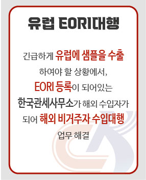 특히, 유럽·영국 EORI NO.를 보유하고 있어 현지 비거주자 수출입 대행도 수행하고 있습니다.